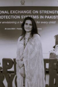 She currently consults with the Government of Khyber Pakhtunkwa in programming for prevention of violence against children and women, empowering adolescents, and peacebuilding, and systems strengthening work. She most recently served as Child Protection Officer with UNICEF in Khyber Pakhtunkhwa, Pakistan, where she provided technical guidance to government to strengthen child protection systems, case management for gender inclusive children protection programming, community-based protection mechanisms, and supporting adolescents through creative/locally grounded approaches in protection, prevention – in 21 (settled and merged) districts of the province. Her work with other organizations has also focused on inclusive programming on social cohesion, rights of religious minorities, women’s political empowerment. She has been part of multiple fellowships and advisory boards focused on women rights, violence prevention, religious freedom, and countering violent extremism. She was awarded the N-Peace Award by UNDP in 2017 for her work in fostering peace between India and Pakistan, including leading delegations of women across borders. During her MPhil from Quaid-i-Azam University, her academic work focused on localizing UNSCR 1325 in Pakistan and reimagining security through the lived experiences of women and girls in peripheral and patriarchal settings (like Chitral).